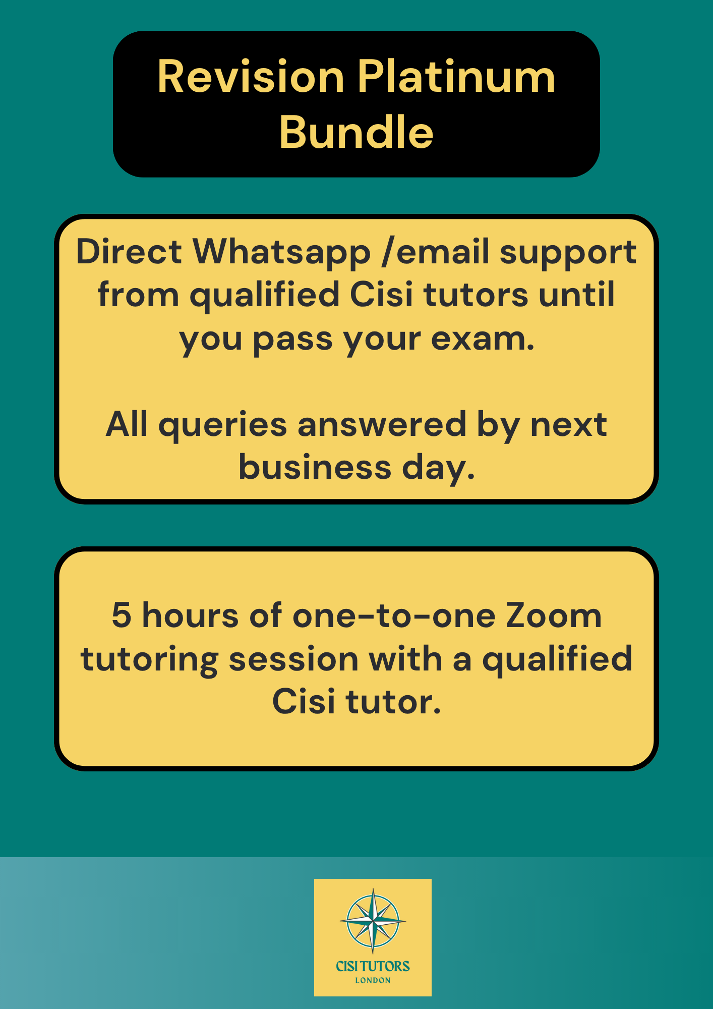 5 hours of one-to-one Zoom tutoring session with a qualified Cisi tutor. We will try to accommodate your scheduling requests for evenings and weekends.
